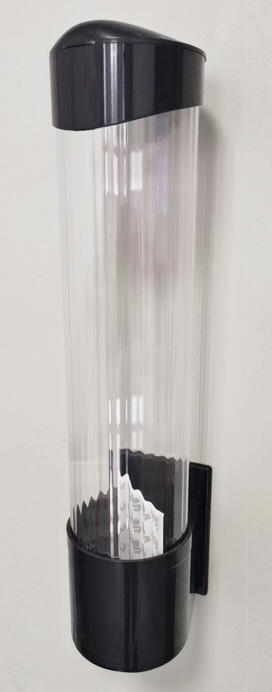 El portavasos transparente, a diferencia de los existentes en el mercado, permite sacar los vasos uno a uno sin sistemas forzados.