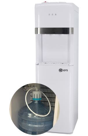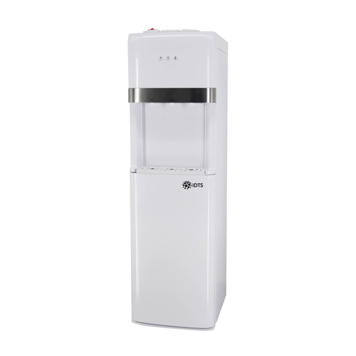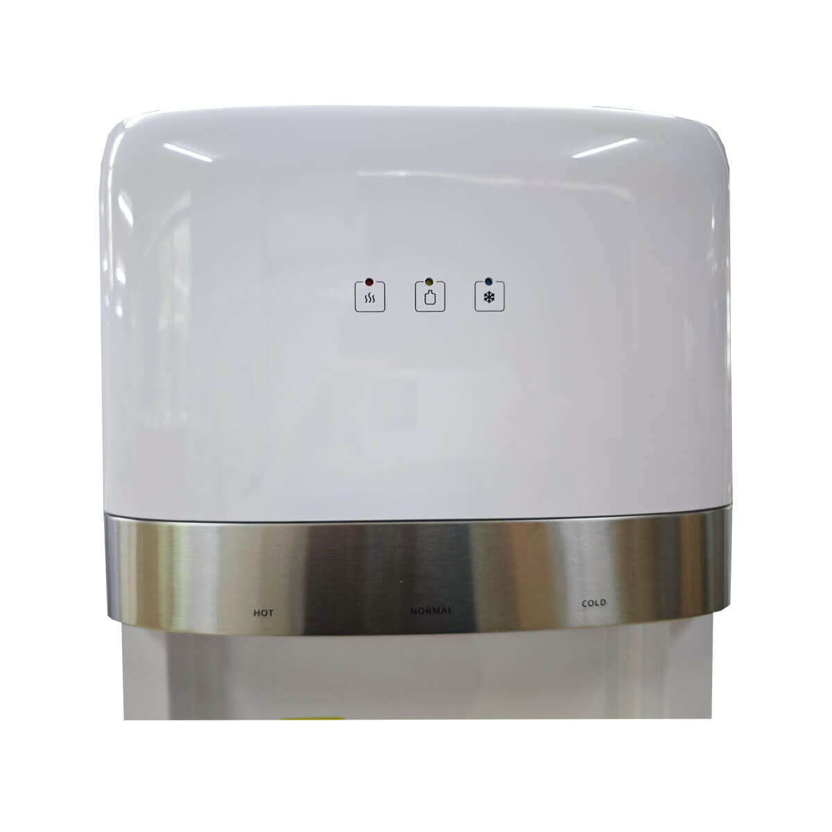 La fuente de agua «modelo Kenia para botella» tiene 3 temperaturas: fría, caliente y natural. Este dispensador tiene un diseño elegante. Color: blanco. Ideal para su colocación en empresas y hogares. La botella se coloca en la parte inferior del dispensador. No cojas más peso y utiliza la botella que quieras, válido para botellas retornables (11, 13, 18’9 y 20 litros) y para botellas de supermercado (5 y 8 litros). *La botella no está incluida.