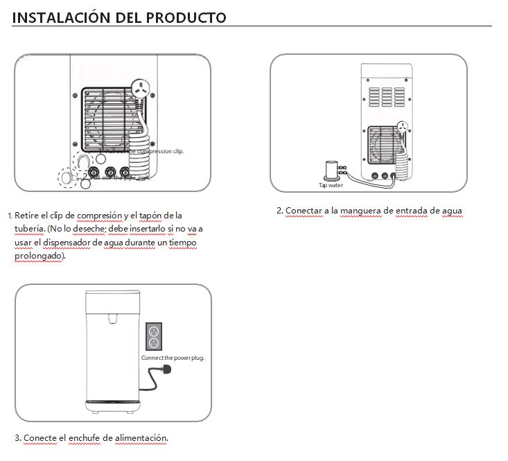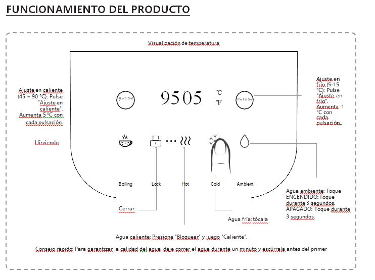 - Dispensador de agua refrigerada. Agua fría y caliente.